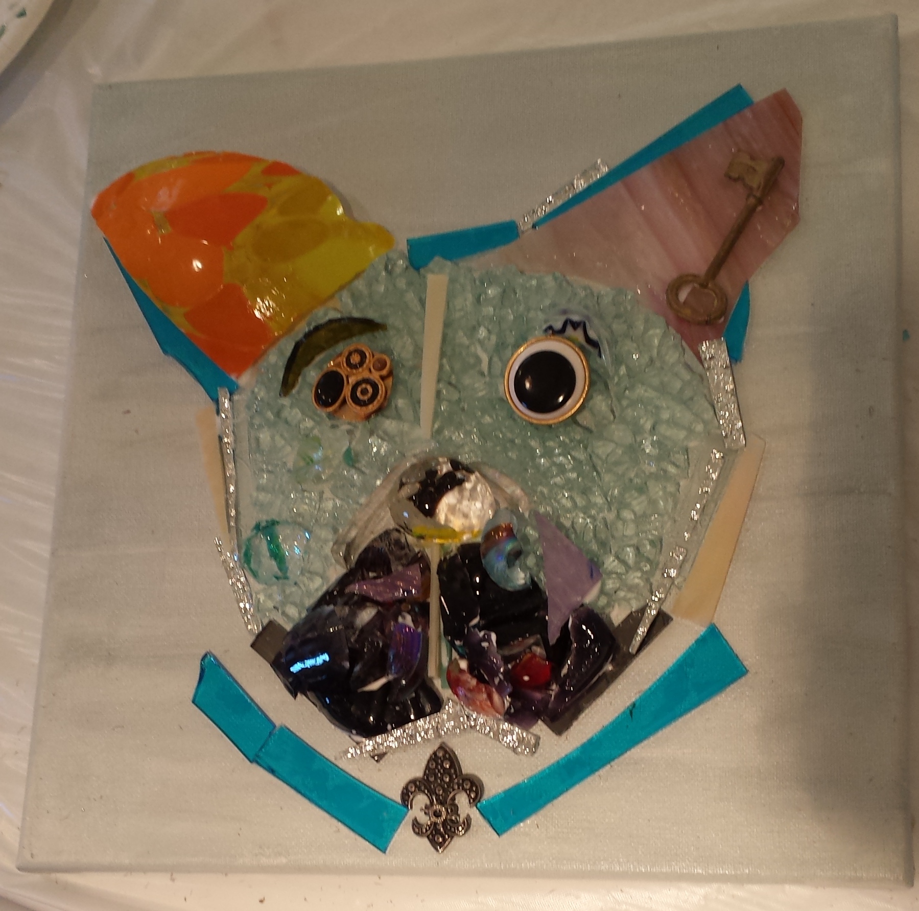 When the Lovelace Interior Designers were invited to attend Mary Hong‘s glass art class we were elated! We commission a lot of her art in our designs and for her to offer to teach us her techniques we couldn’t pass up on the opportunity. She explained how to change one persons scraps into a one of a kid treasure, how to mix different media types into one, and how to allow your creativity to know no boundaries. Here is my completed glass art piece, not too shabby for my first time!!